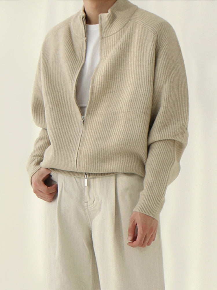 Standing Collar Lazy Style High Necked Sweater Jacket For Men