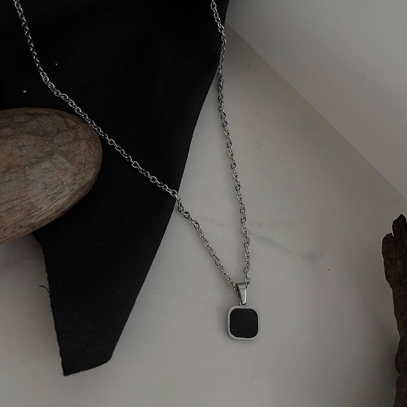 Titanium Steel Black Square Necklace
