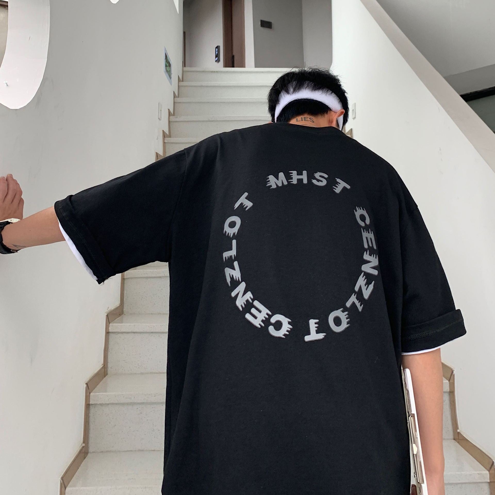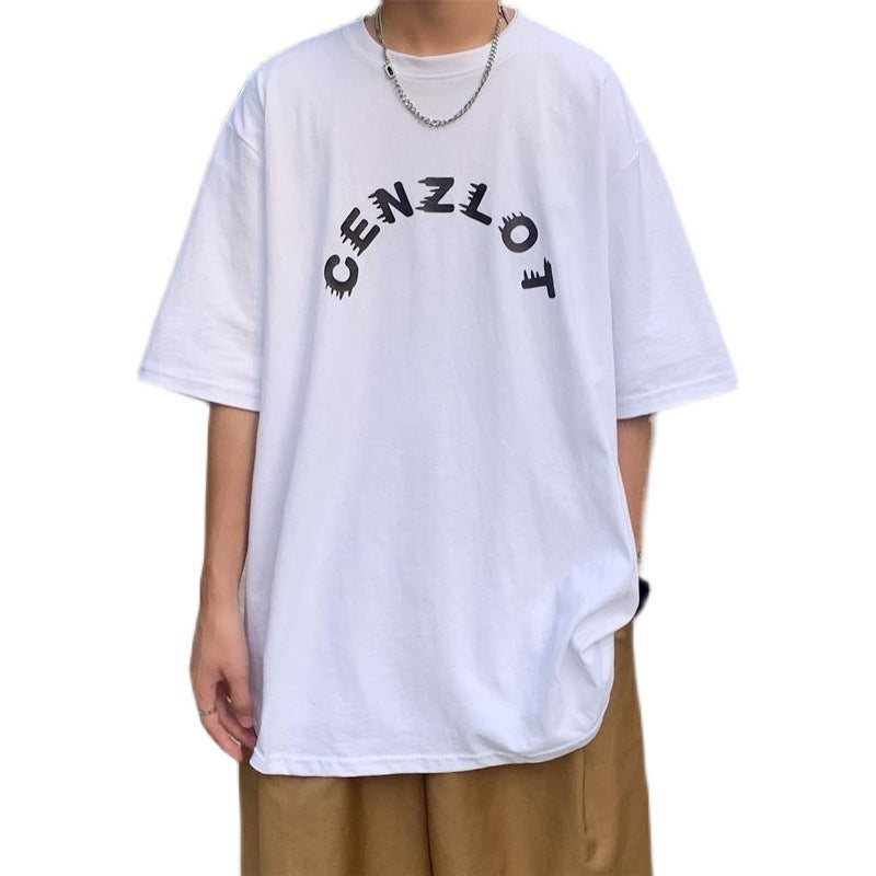 Trend Letter Print Half Sleeve Loose Short Sleeve