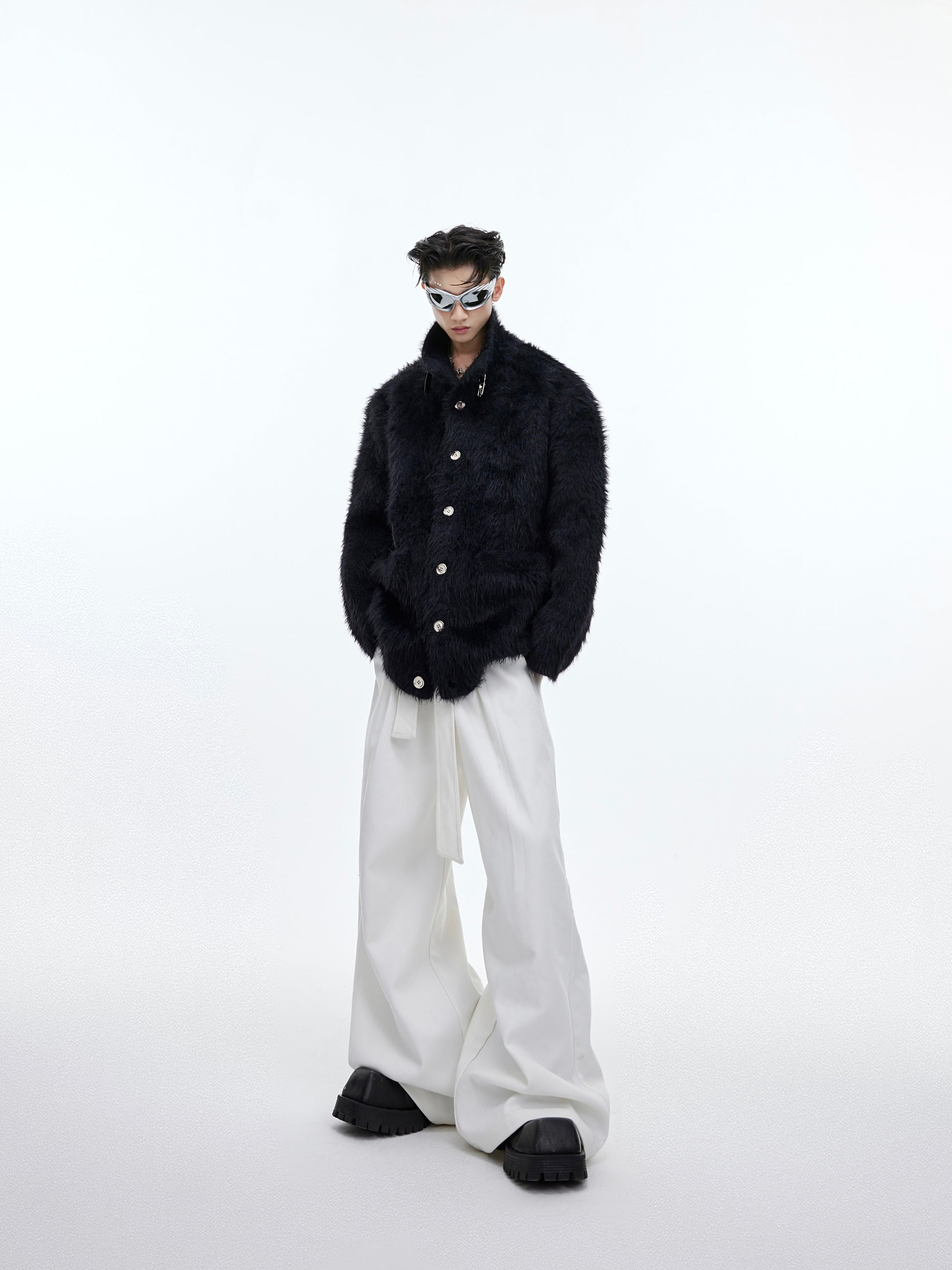 Anti-mink Hair Stand Collar Sweater Belt Buckle Design Sense
