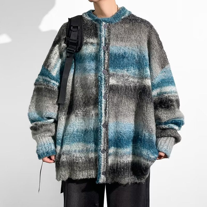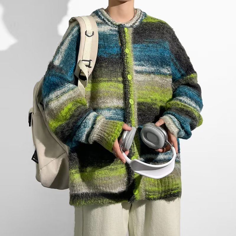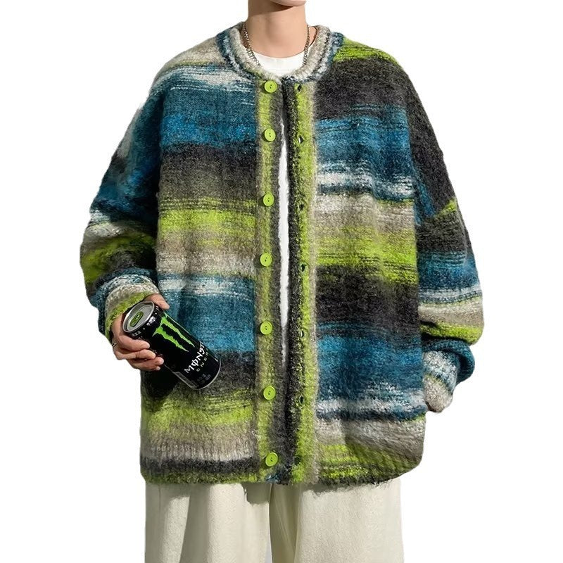 Contrast Sweater Baggy-Casual Knitted Cardigan Top