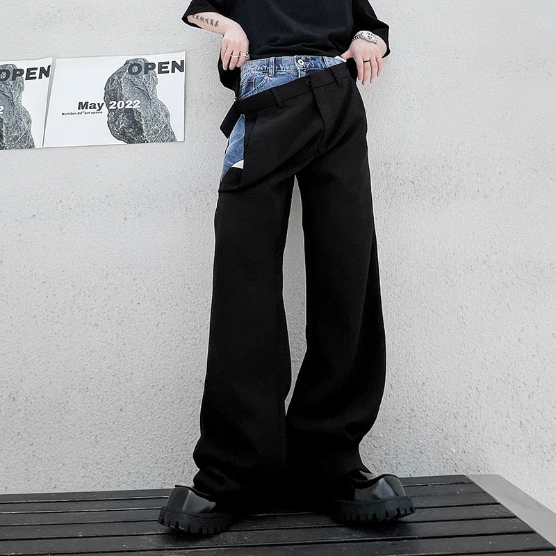 Denim Patchwork Trousers Draping Loose Plankton Style