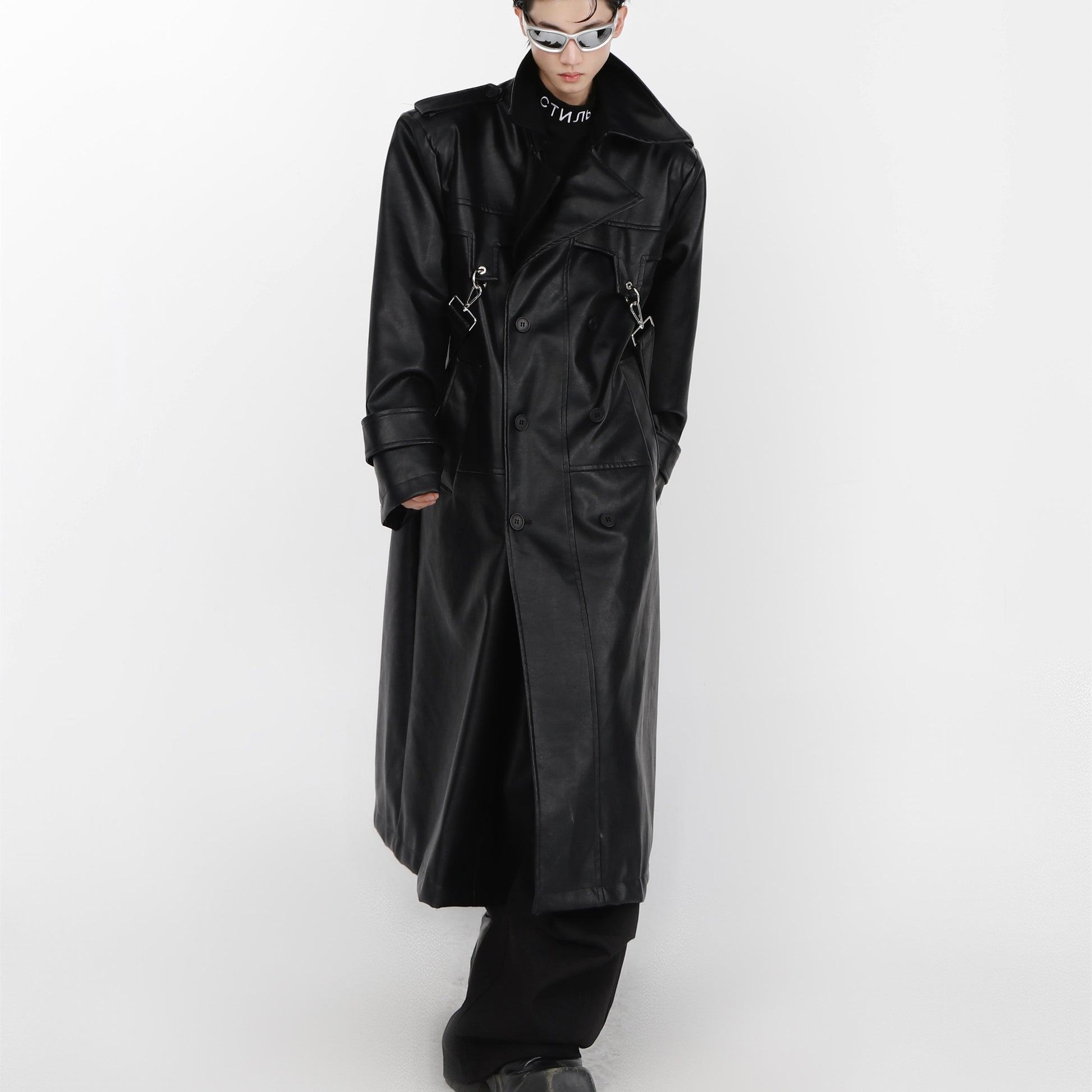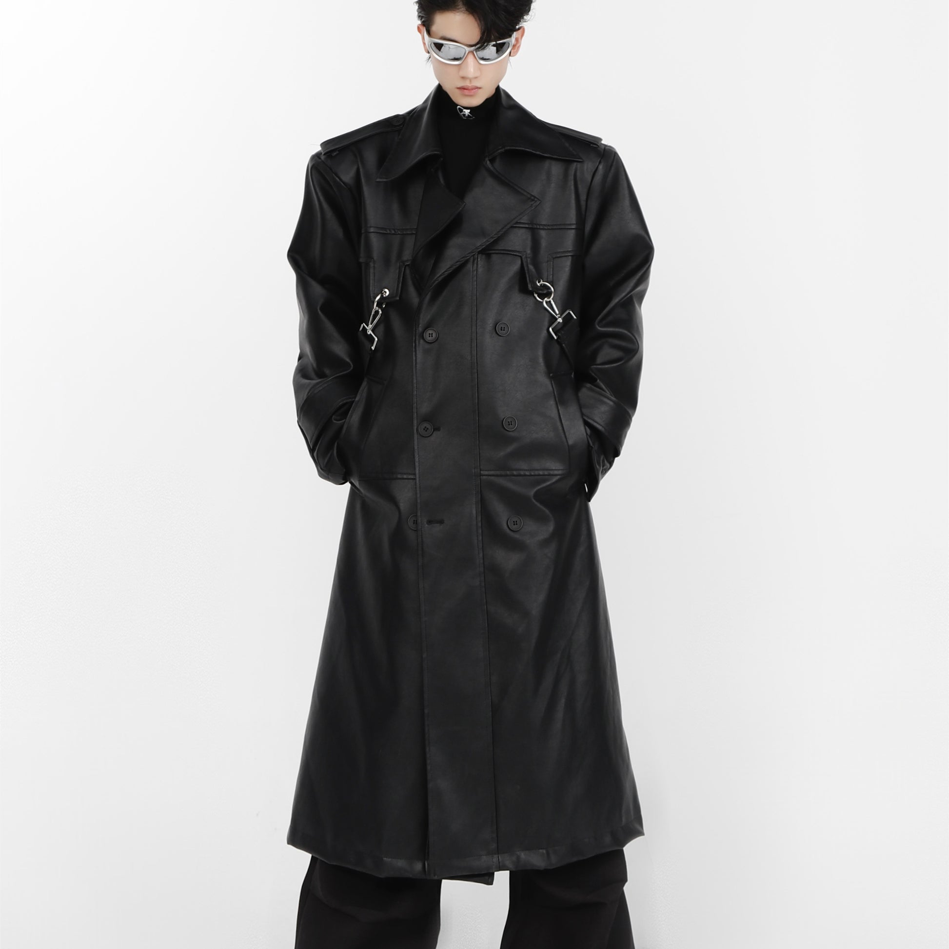 Double-layer Patchwork Leather Padded Shoulder Coat