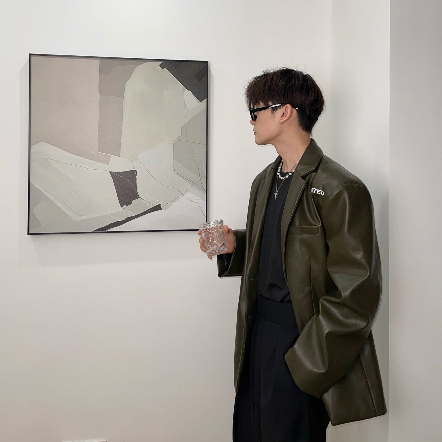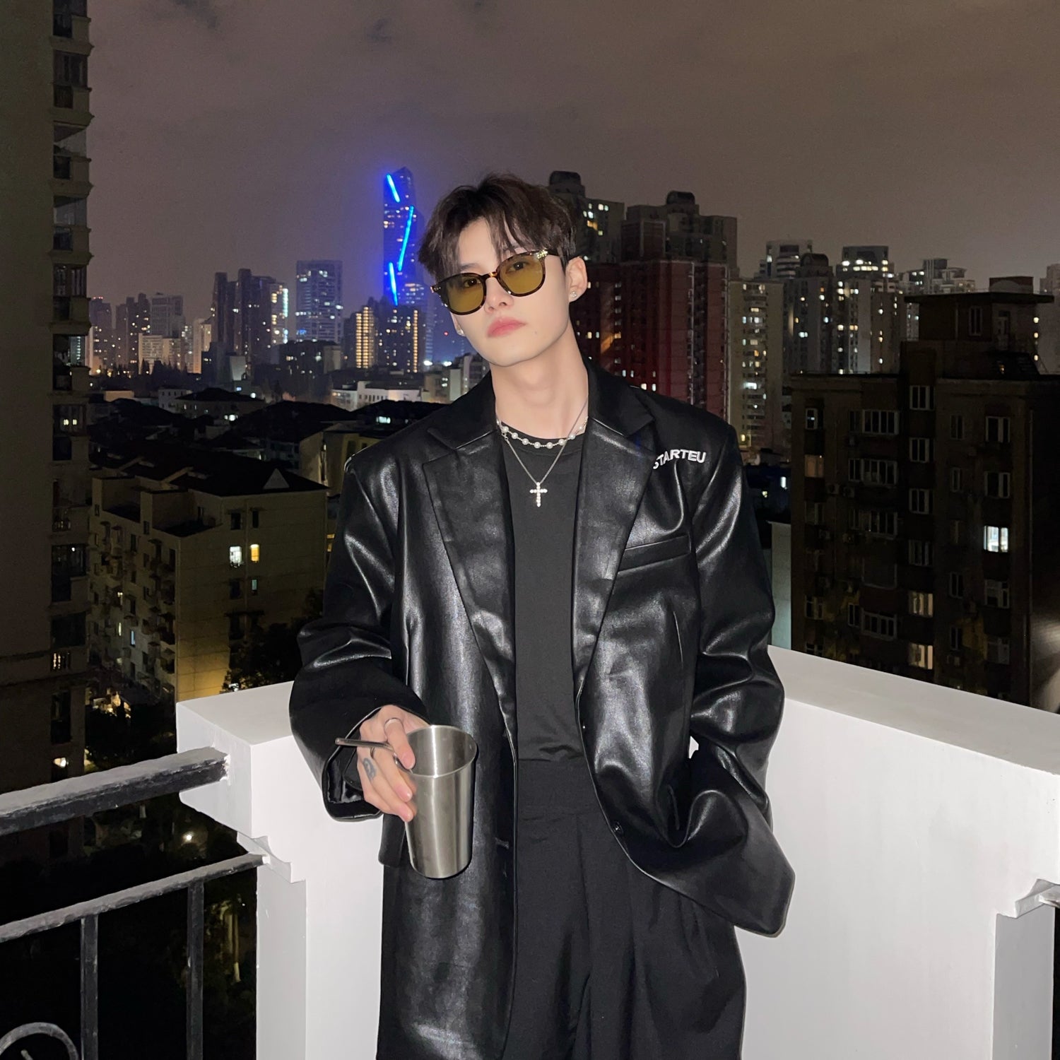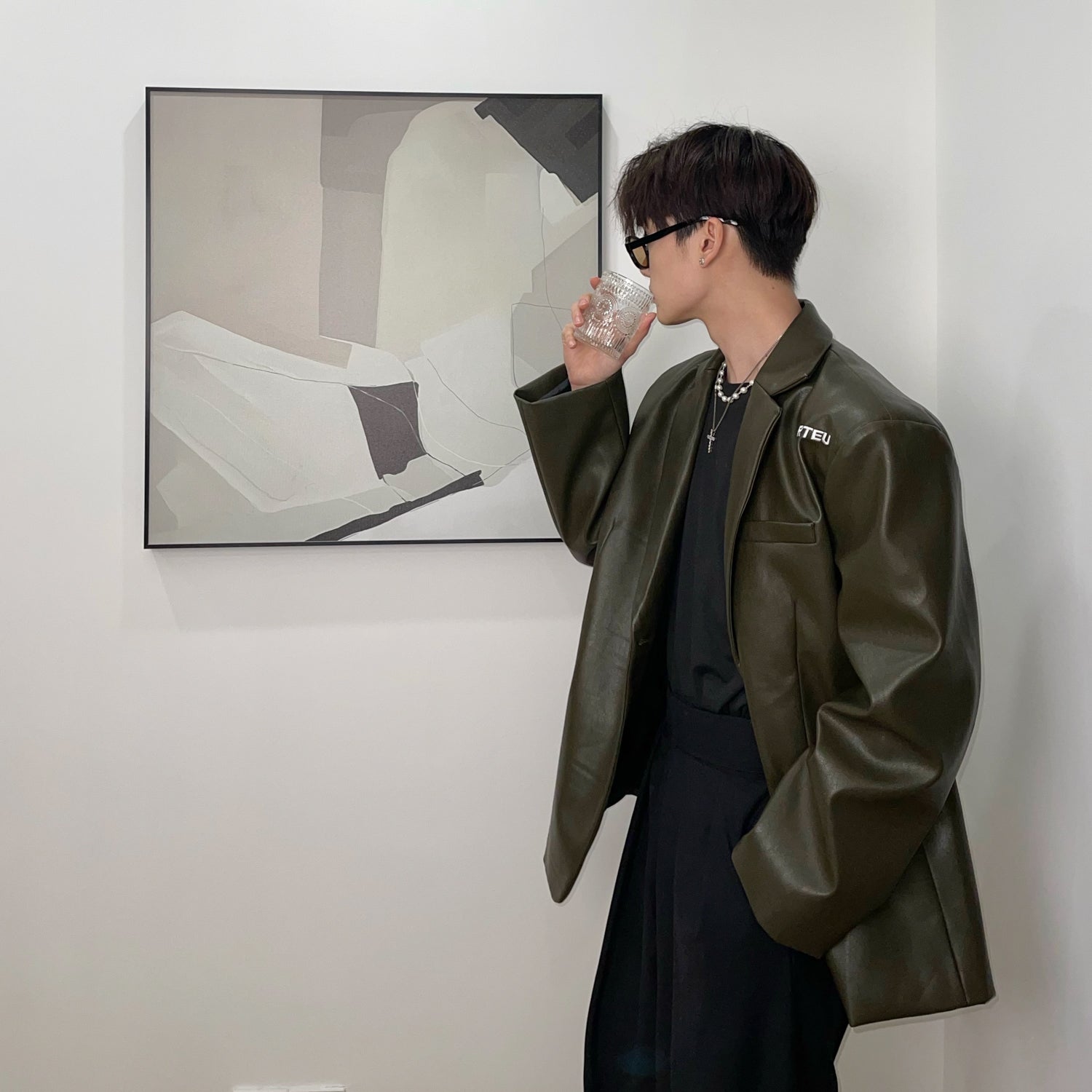 Embroidered Retro Pu Leather Shoulder Pad Suit