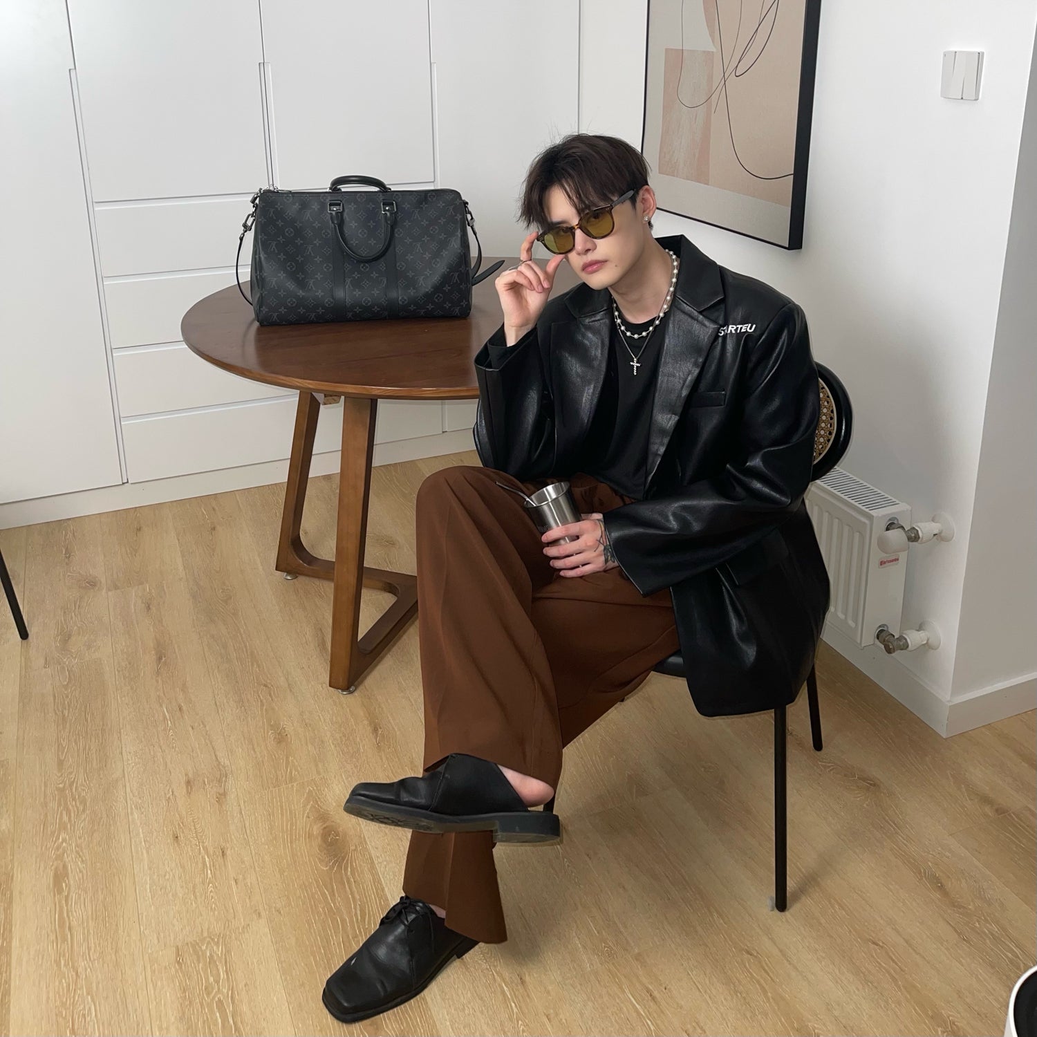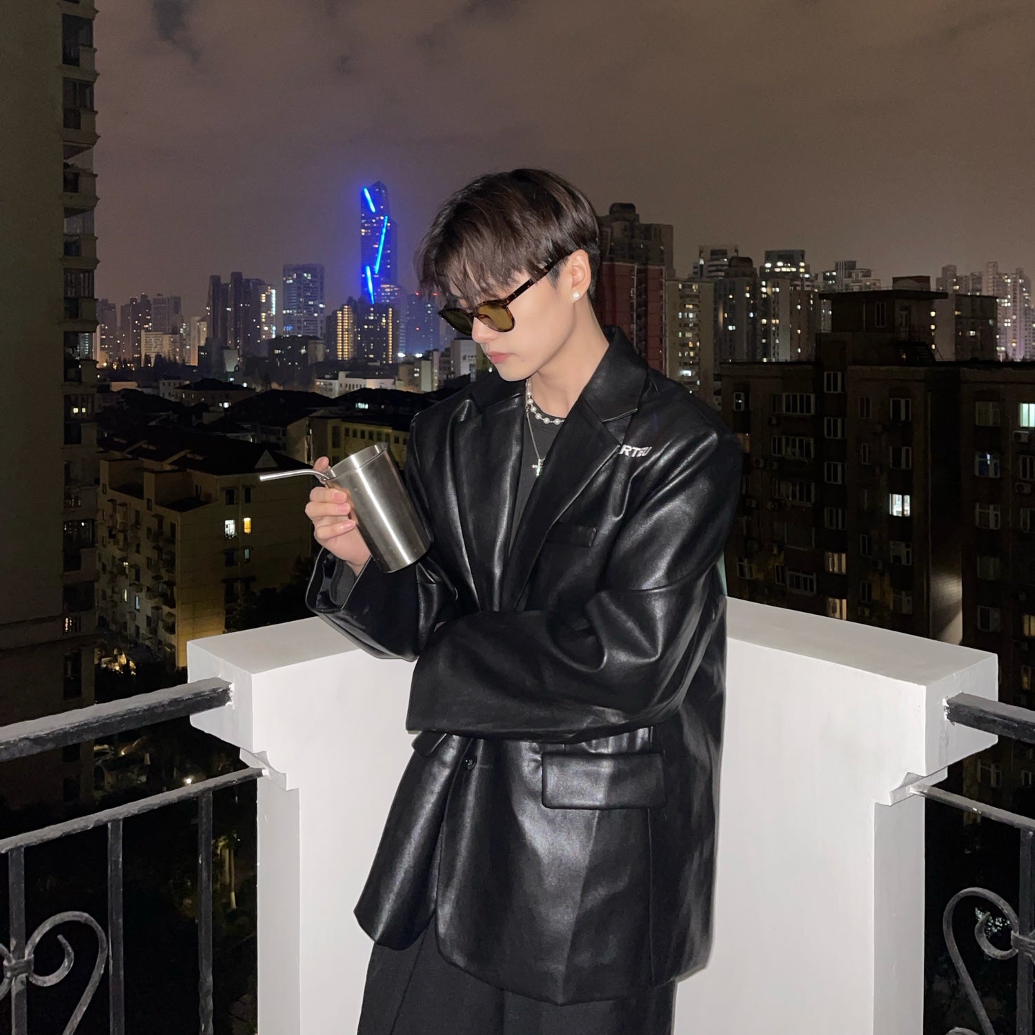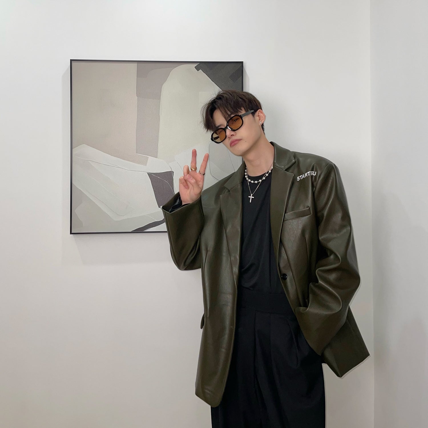 Embroidered Retro Pu Leather Shoulder Pad Suit