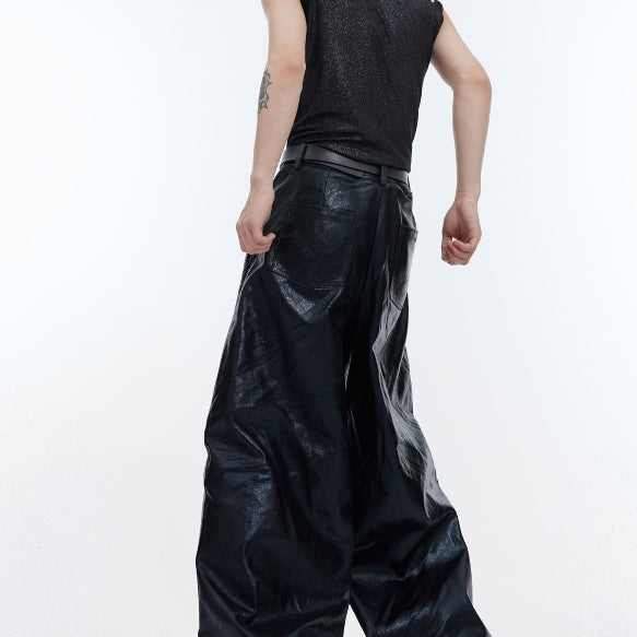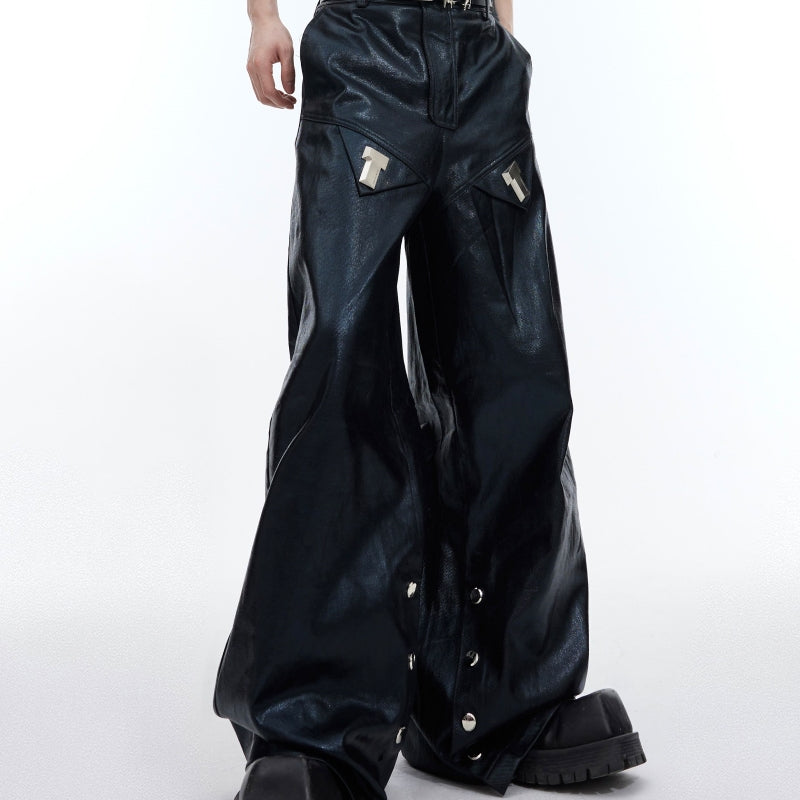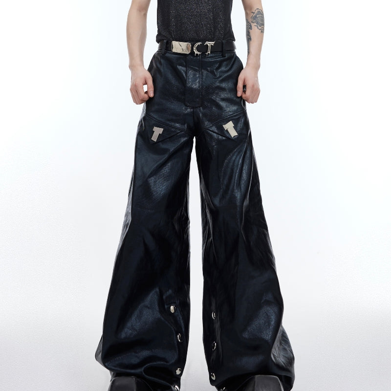 Fabric Metal Embellished Baggy Slacks With Wide Legs