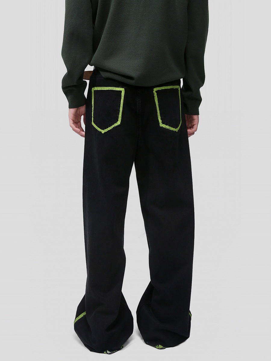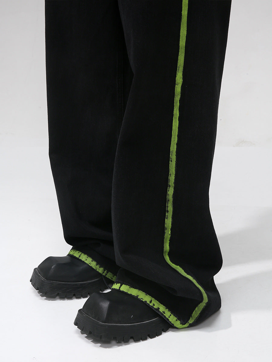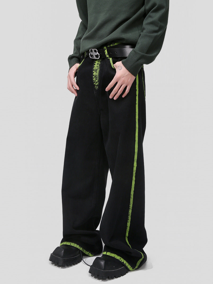 Hand Painted Graffiti Color Contrast Patchwork Line Jeans