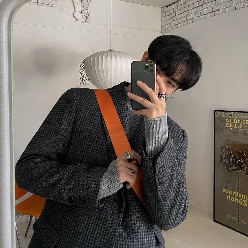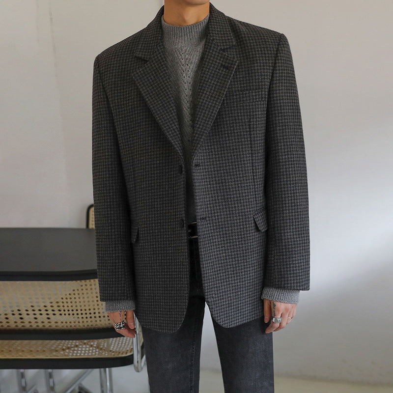Houndstooth Plaid Suit Woolen Coat Jacket