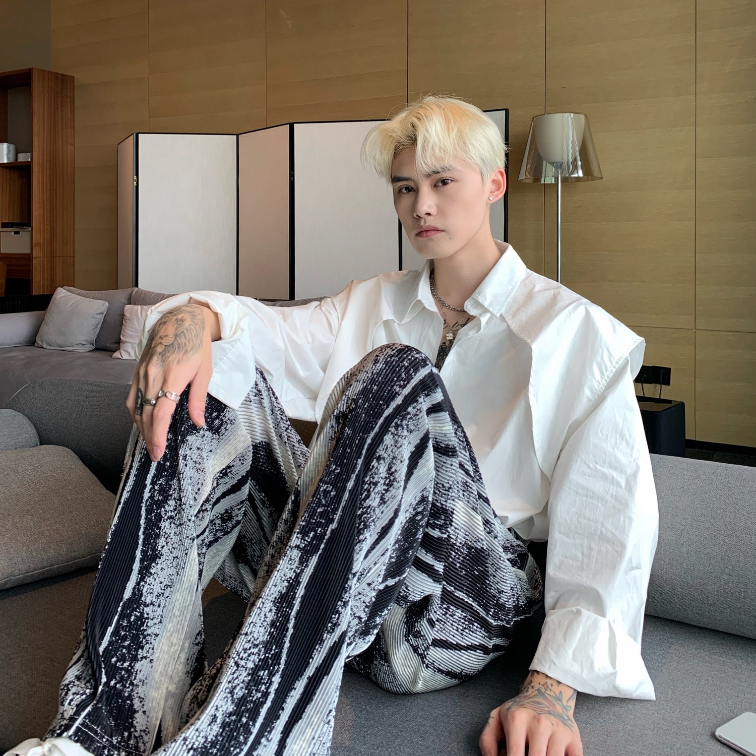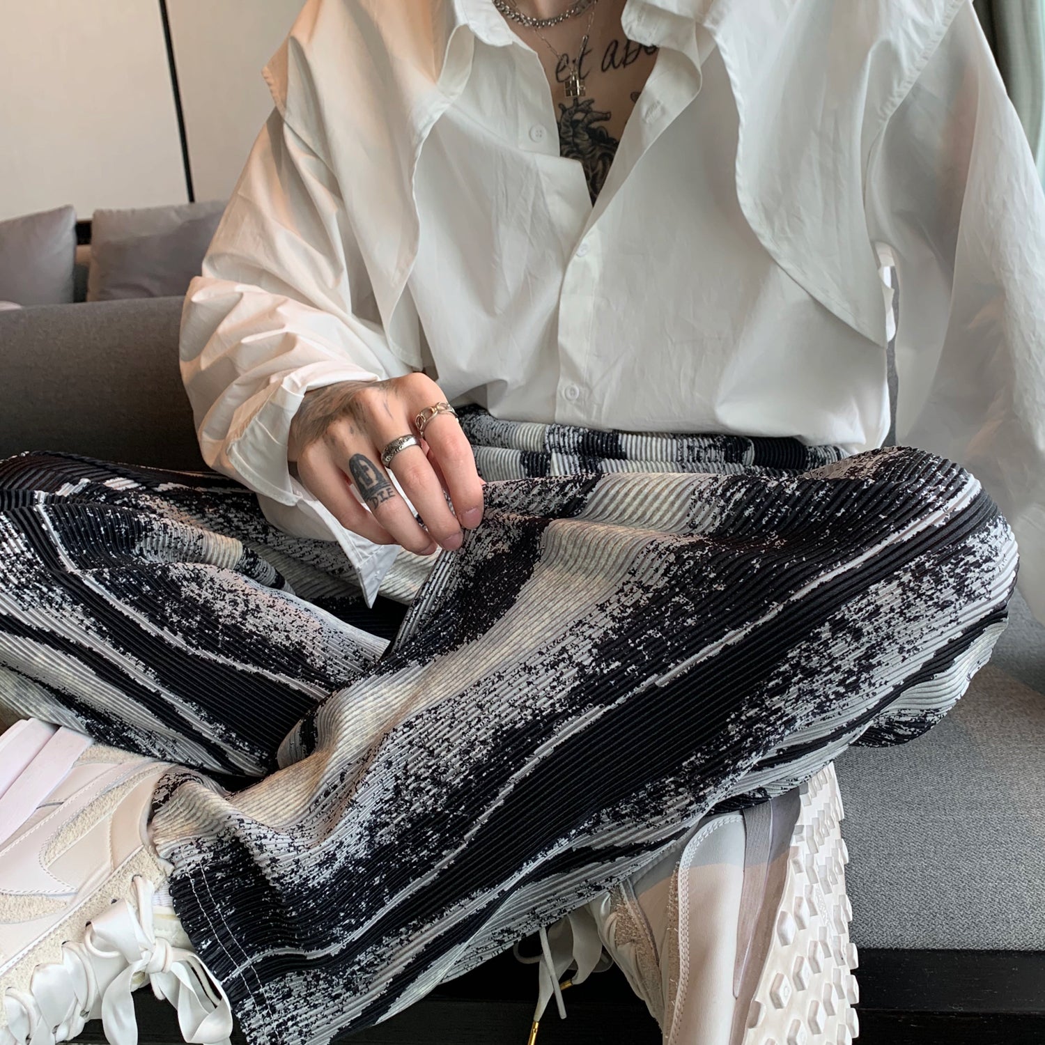 Ink Folds Drape Loose Straight-Leg Casual Mopping Pants