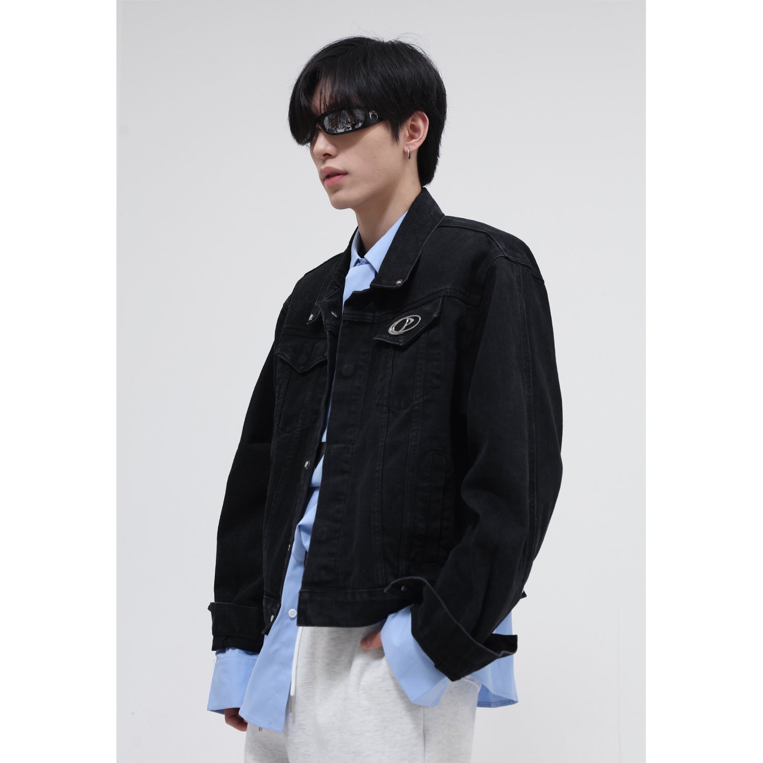 Korean Style Loose Metal Design Short Denim Jacket For Men