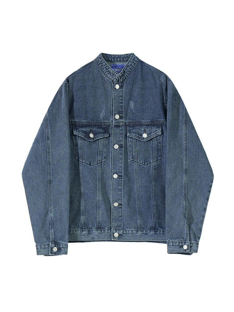Loose Versatile Stand Collar Denim Coat