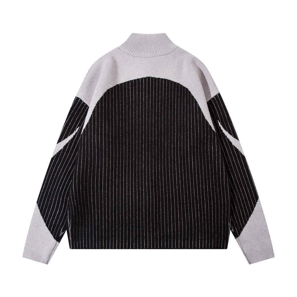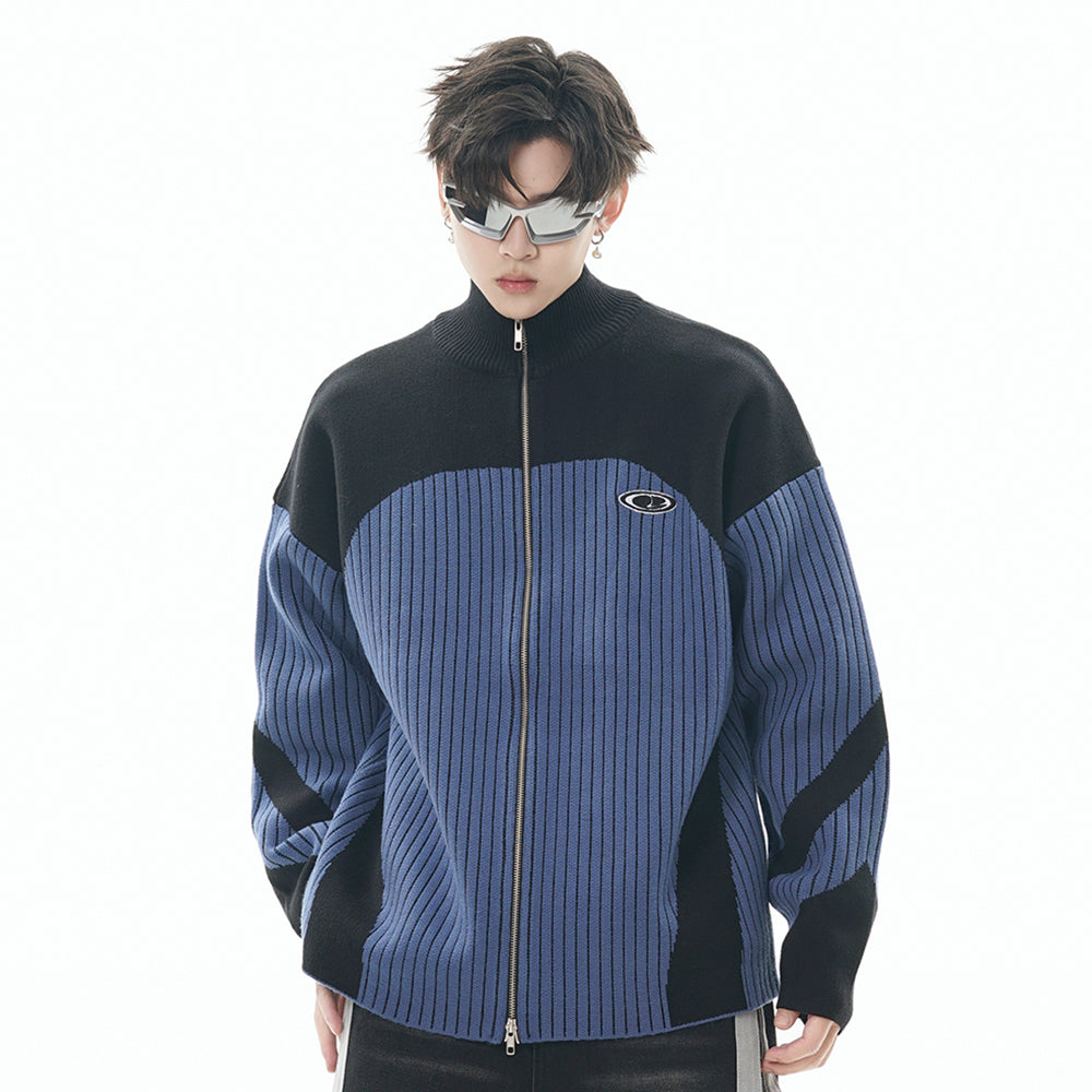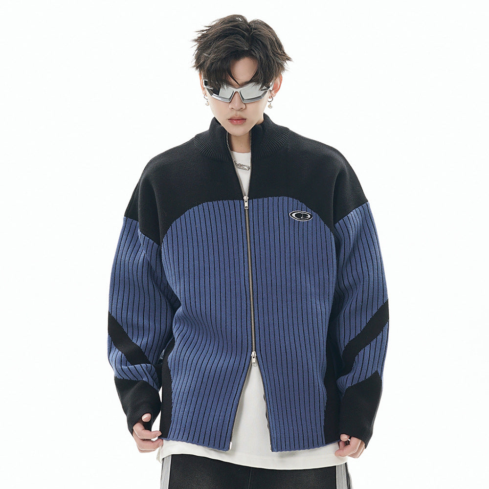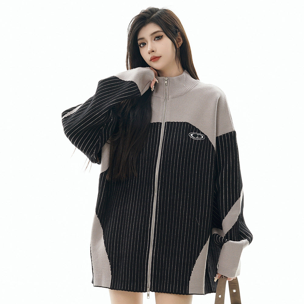 Multi-colored Half-turtleneck Two-way Zipper Sweater Coat