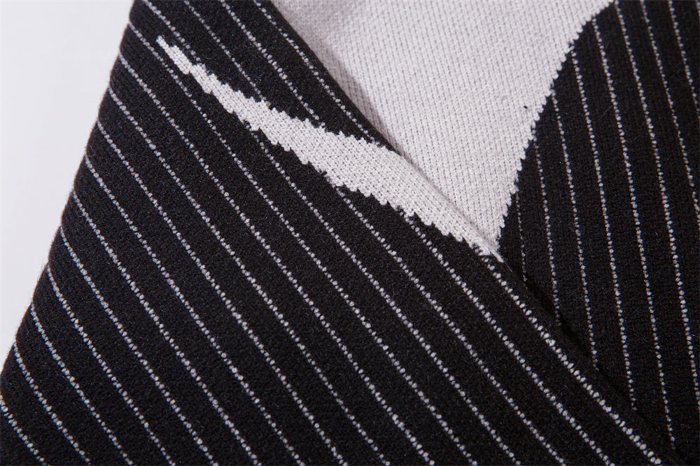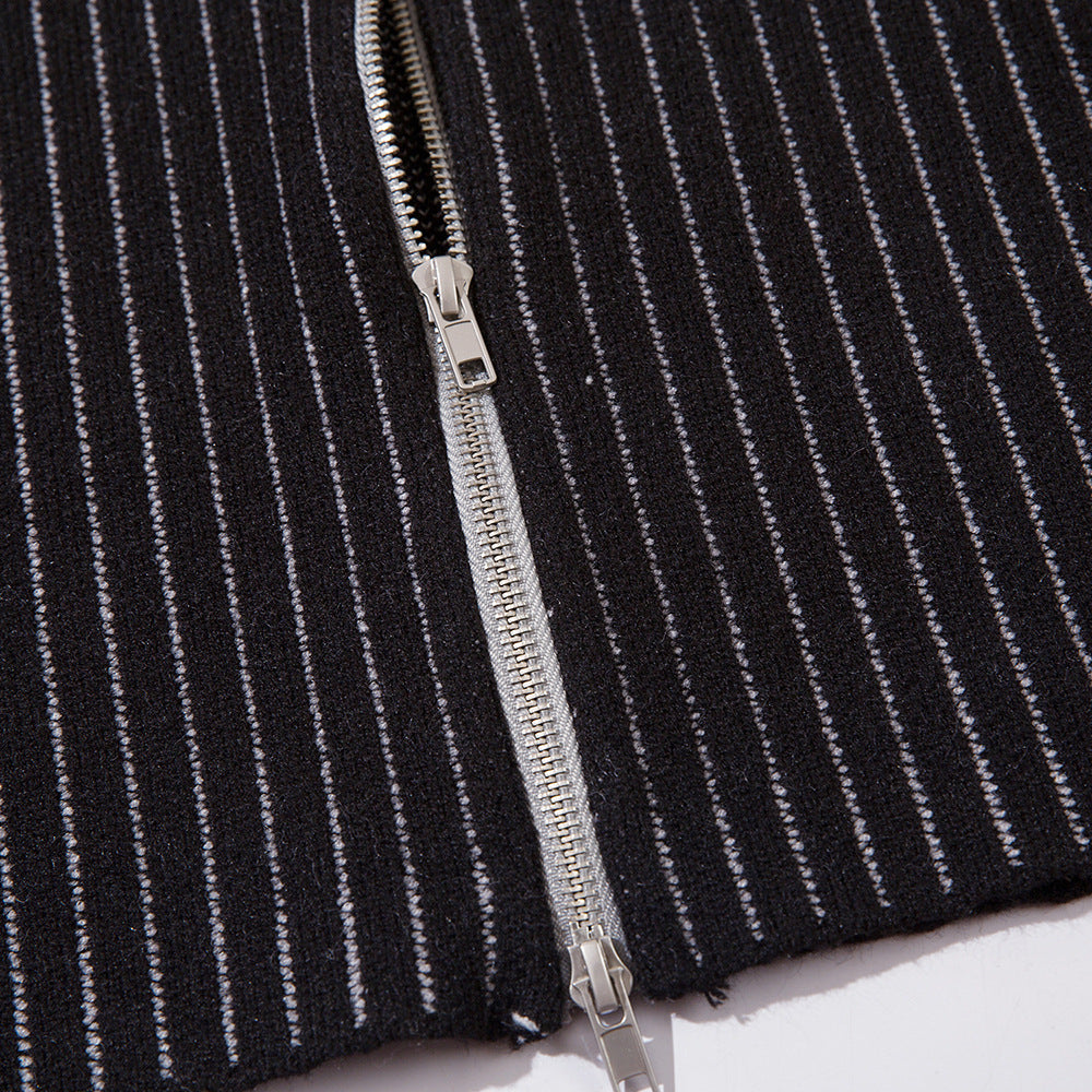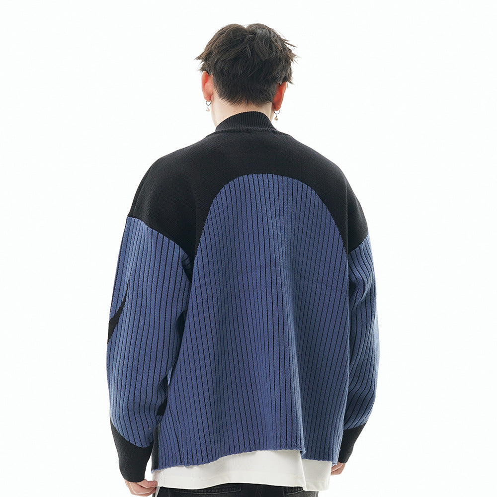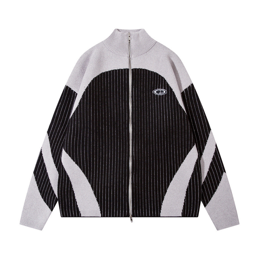 Multi-colored Half-turtleneck Two-way Zipper Sweater Coat