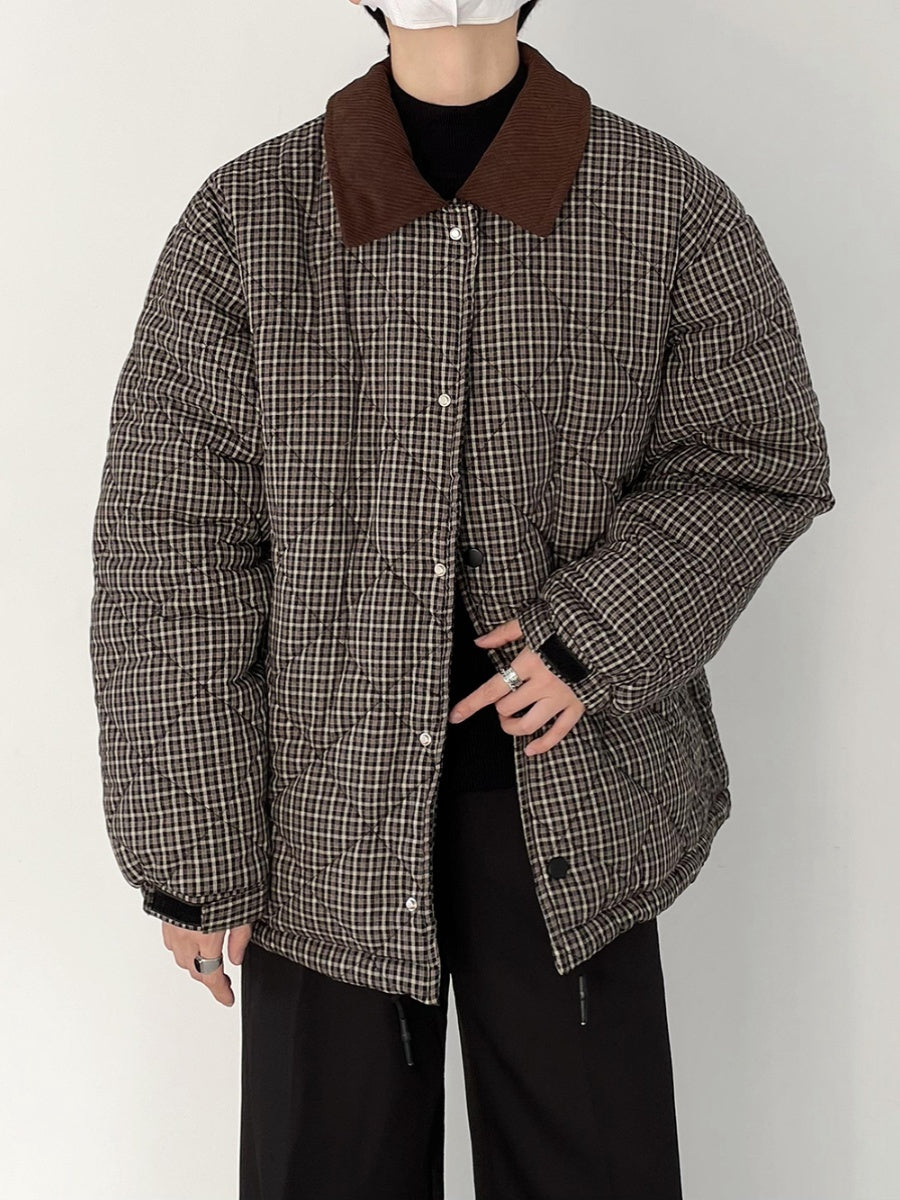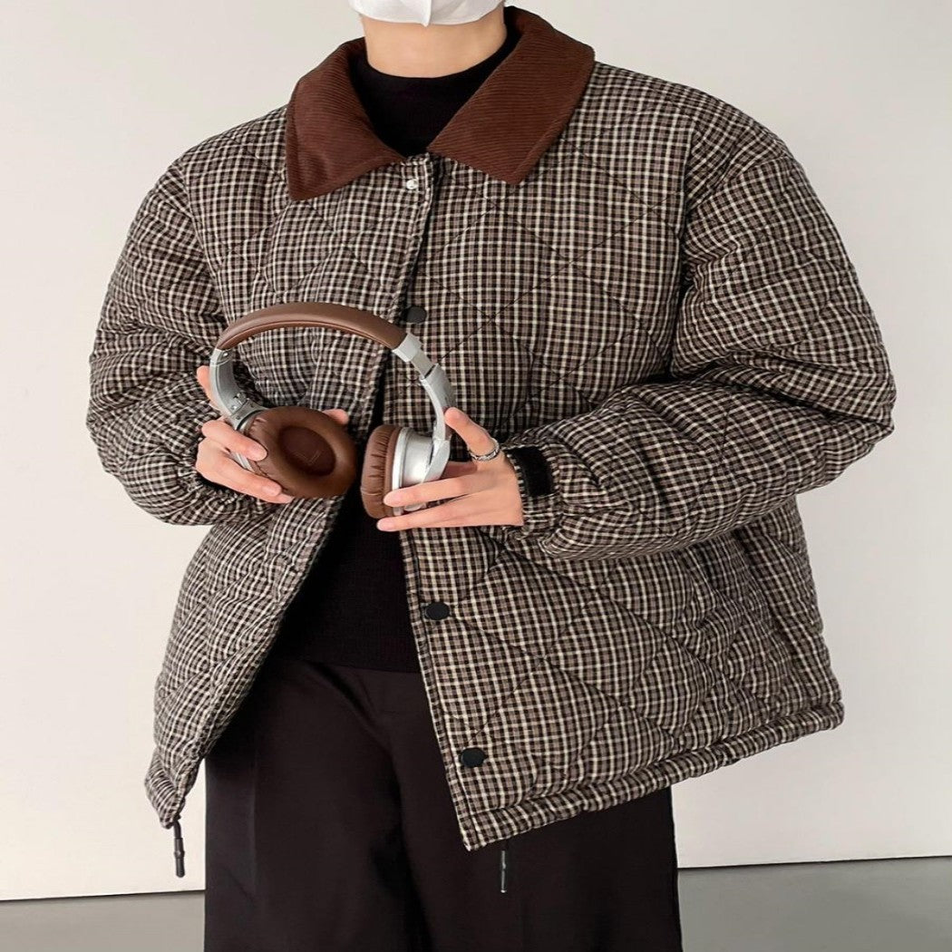 Plaid Coat Men's Loose Retro Cotton-padded Jacket
