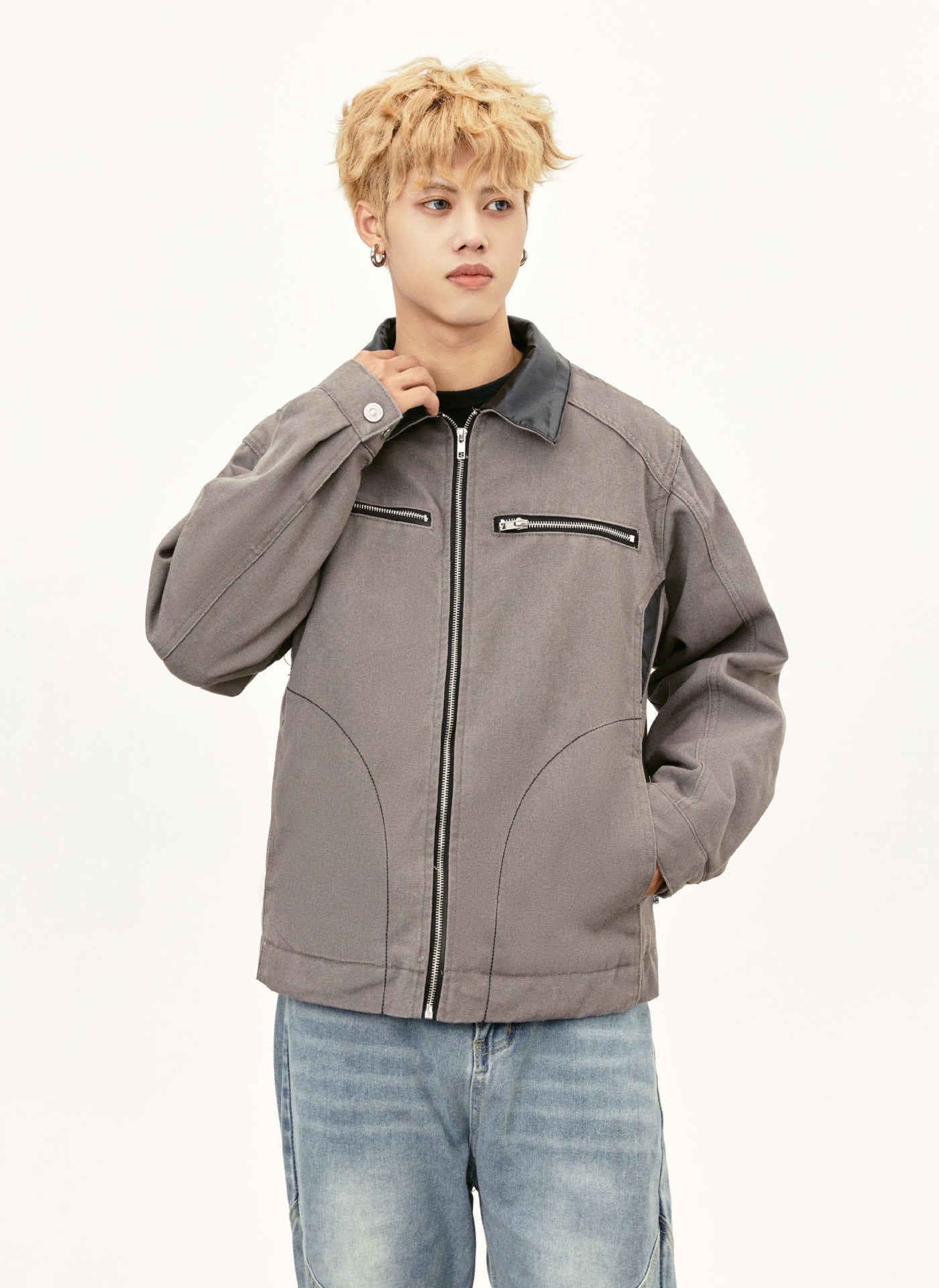 Retro Lapels PU Leather Workwear Thickened Jacket