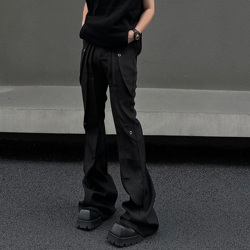Rivet Design Casual Pants High Waist Crimp Stitching Loose Cargo Trousers