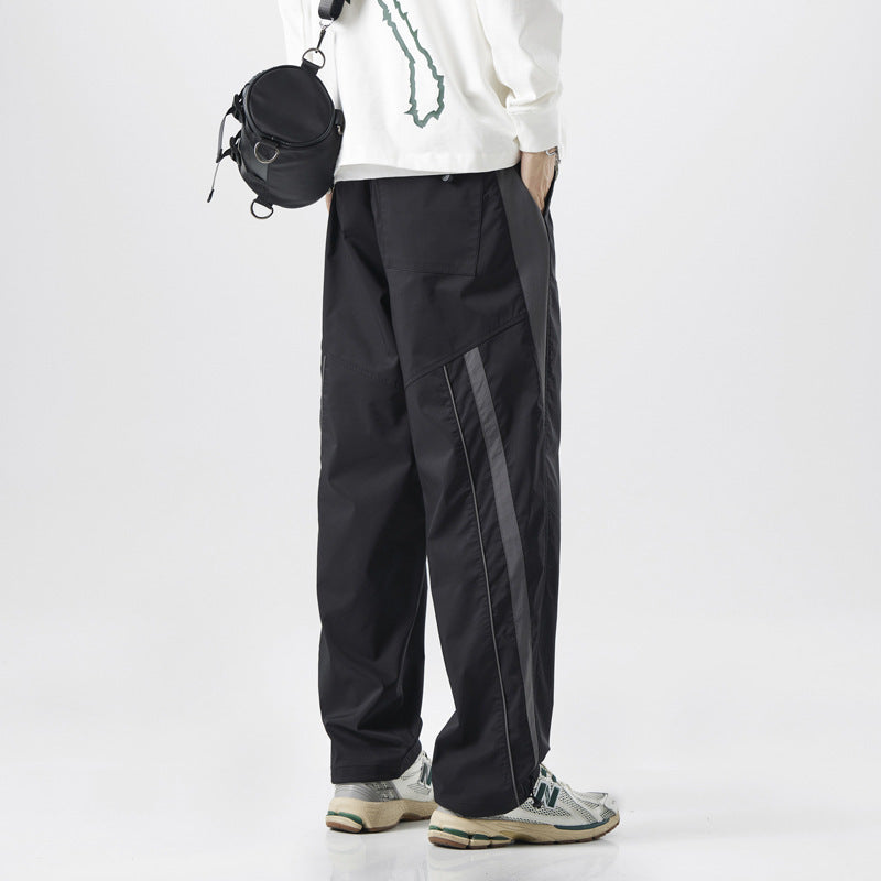Street Retro Patchwork Striped Wide Leg Outdoor Trousers