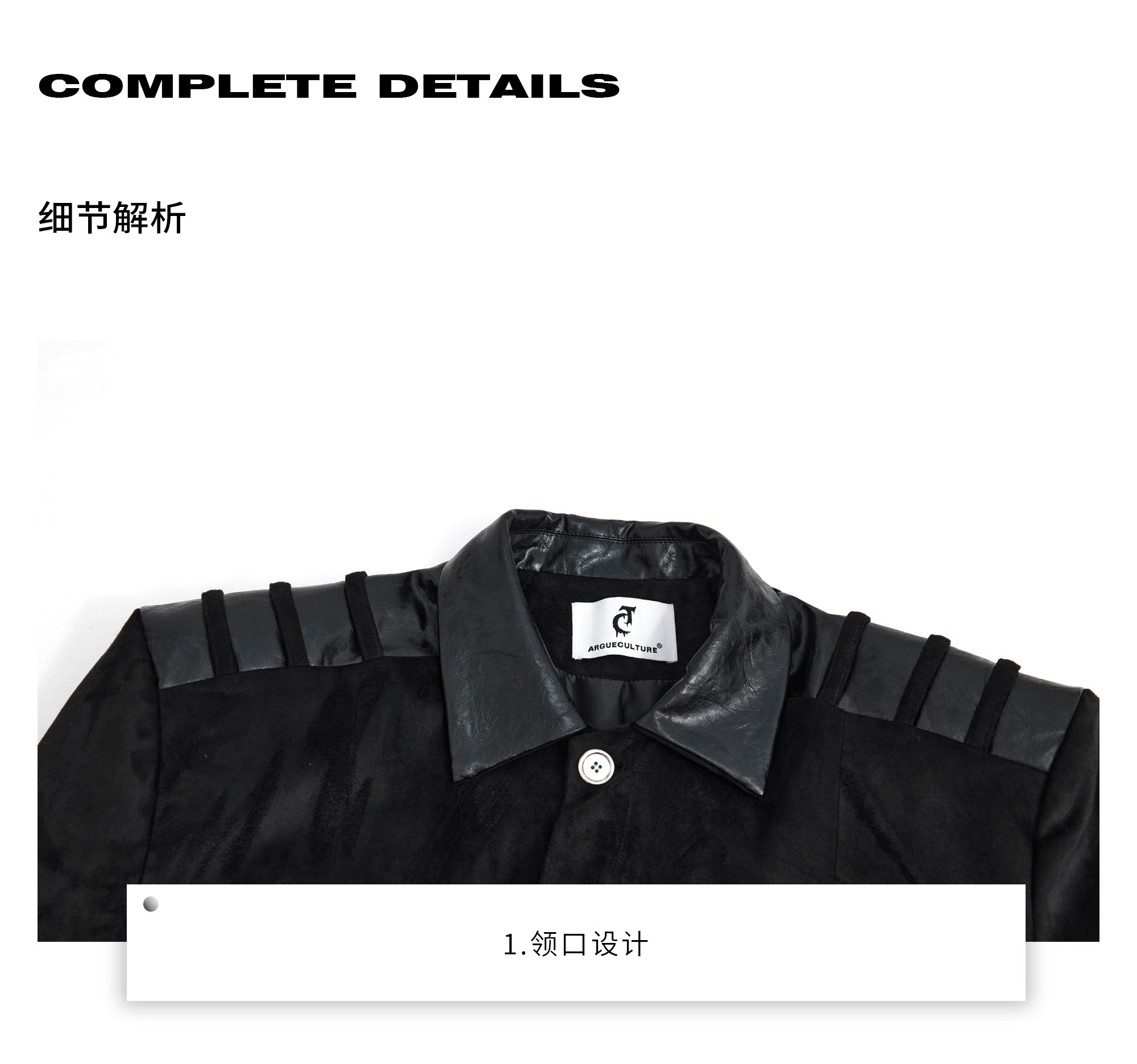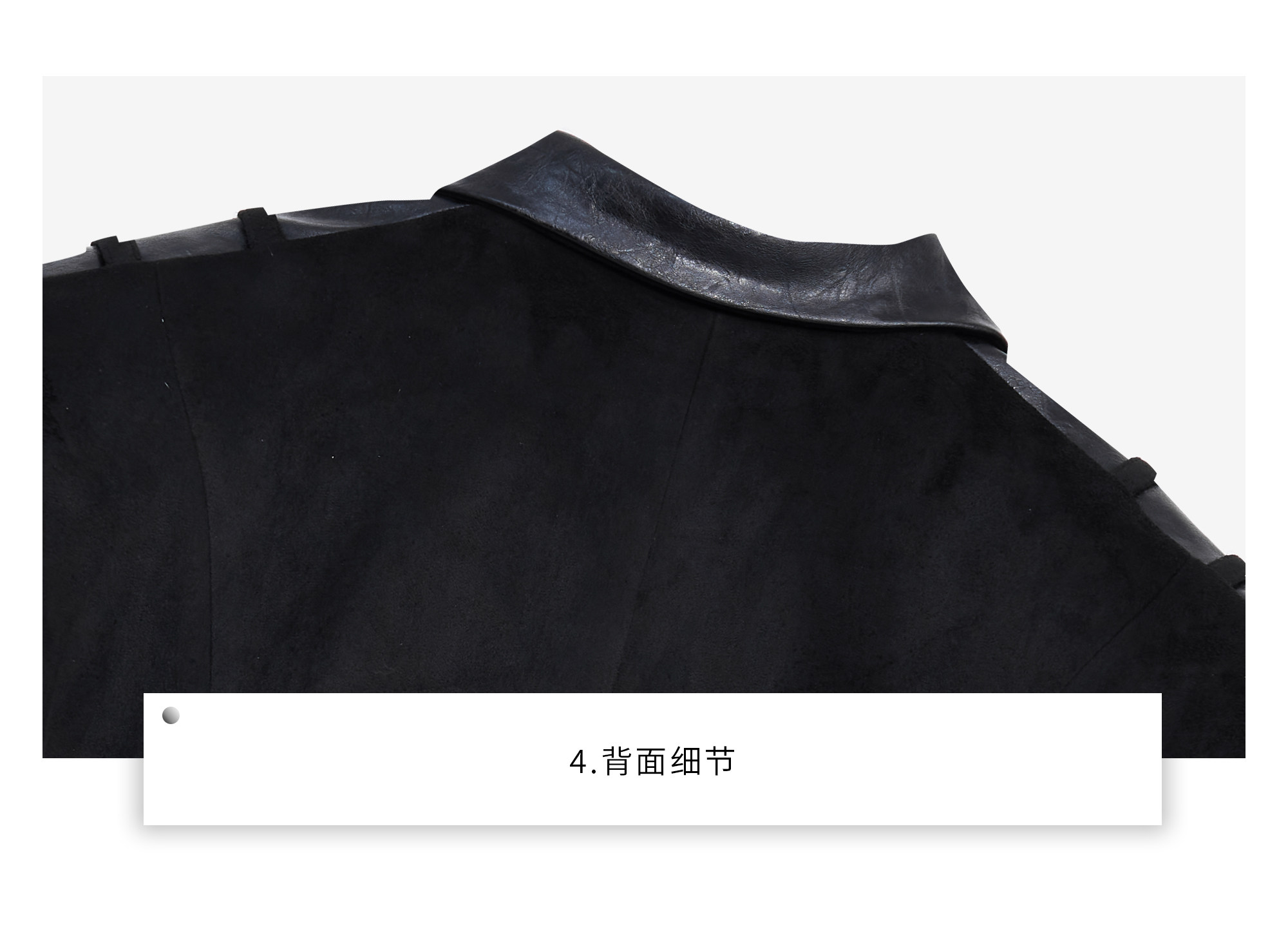 Suede Stitching Padded Shoulder Profile Suit Jacket