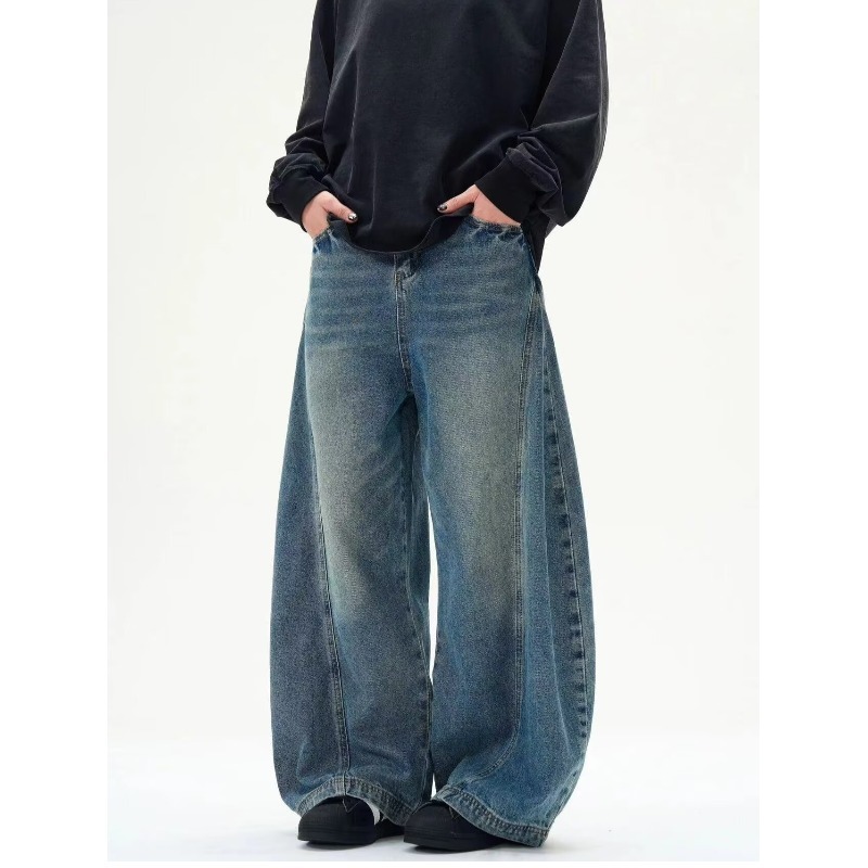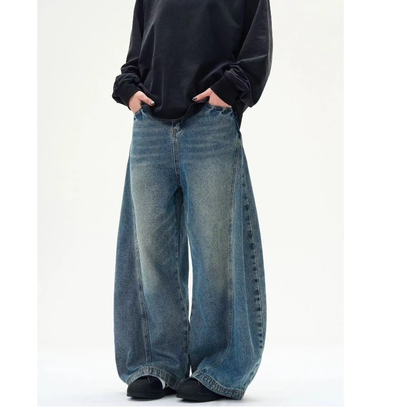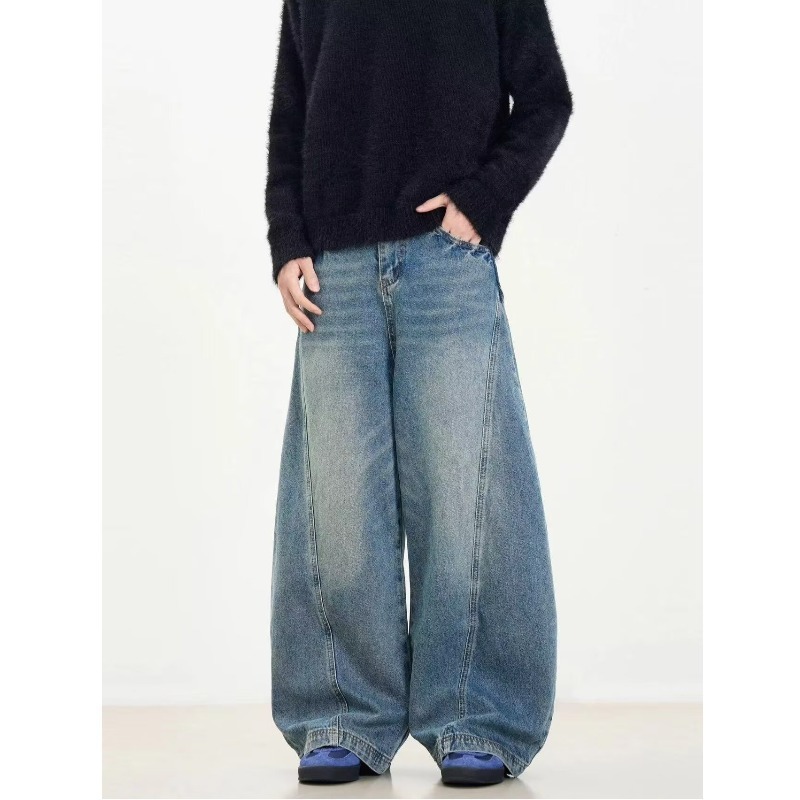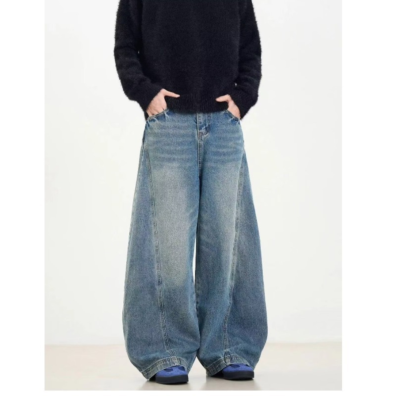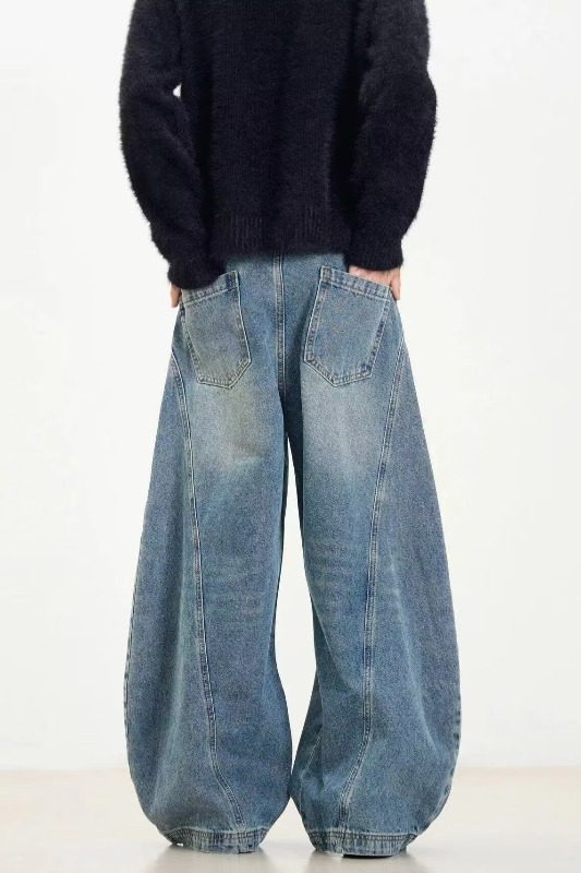 Washed Distressed Machete Design Jeans