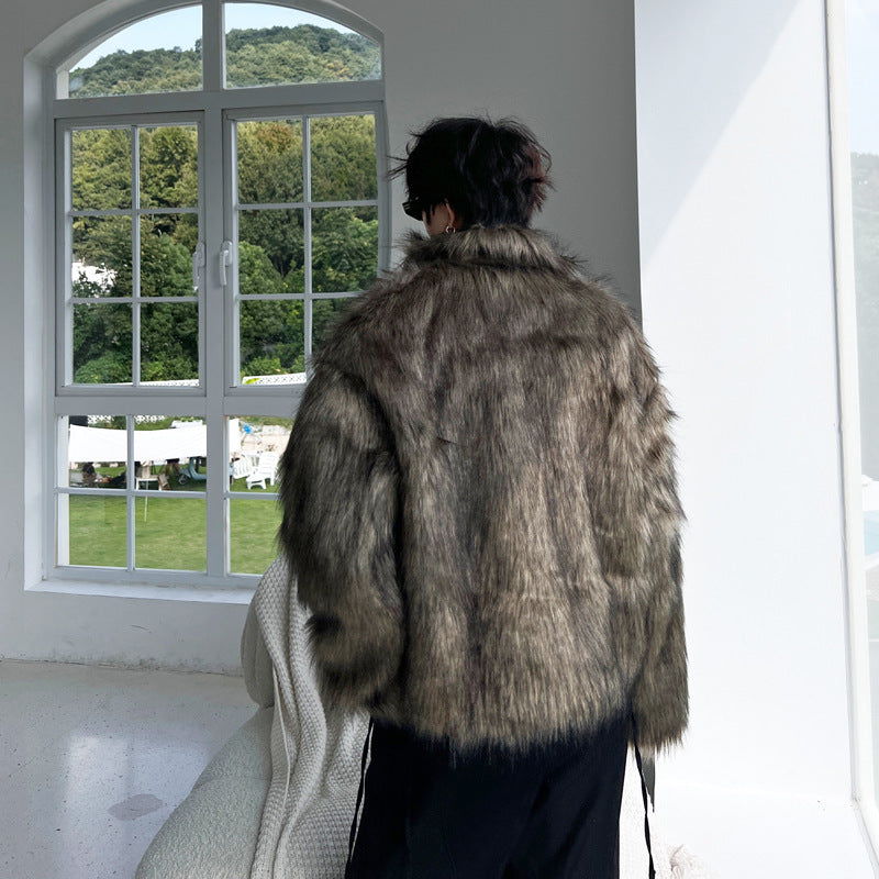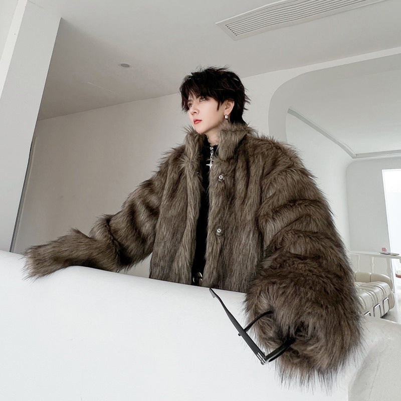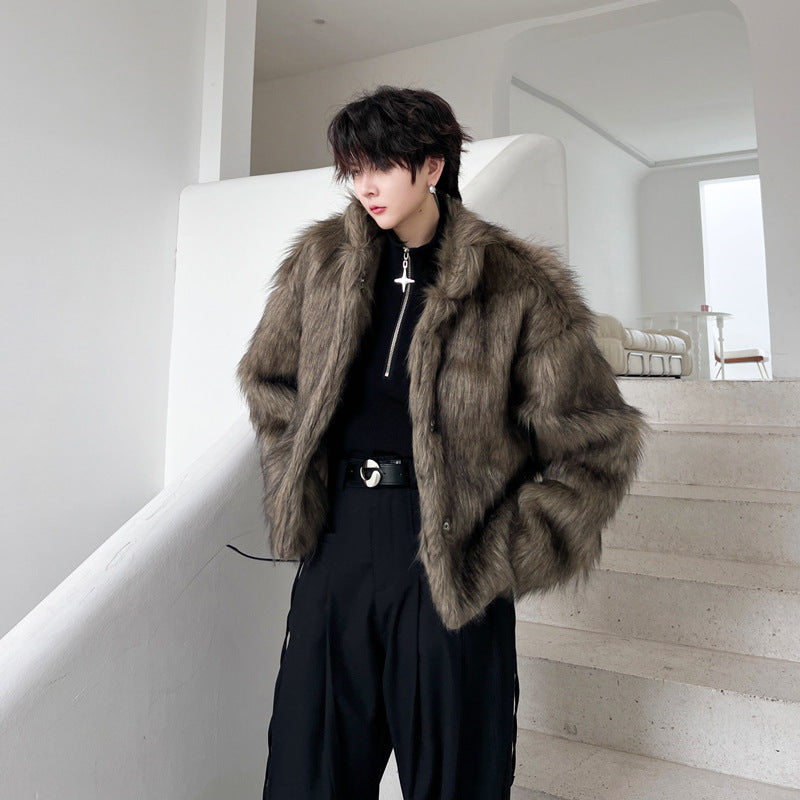 Winter Solid Color Dark Placket Lapel Men's Leather Cotton-padded Coat